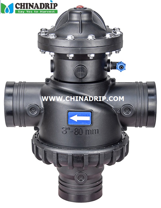 1. được kết hợp bởi một số van này là van thủy lực 3 chiều hình chữ T với hai buồng, vận hành bằng thủy lực và được dẫn động bằng màng ngăn, phù hợp cho các hệ thống lọc tự động rửa ngược khác nhau.